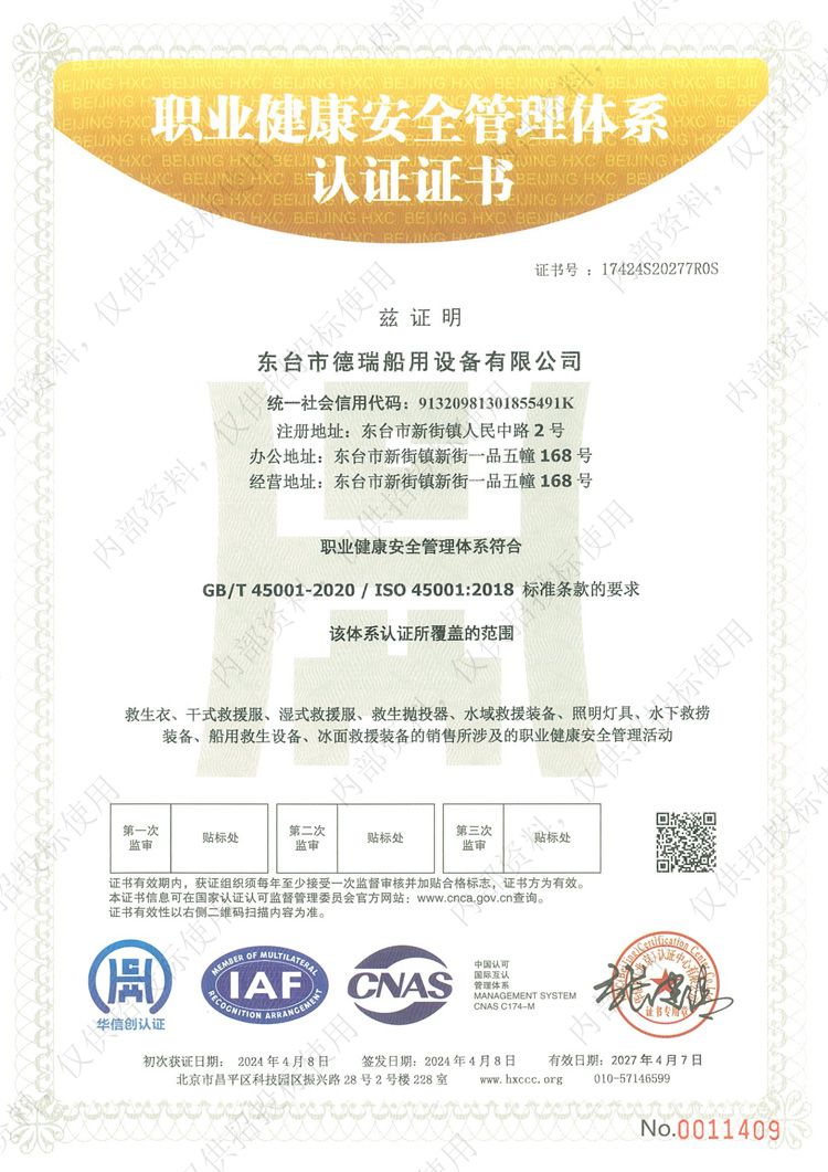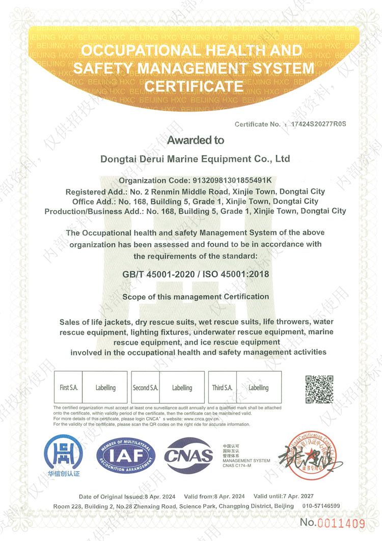 職業(yè)健康安全管理體系認(rèn)證證書