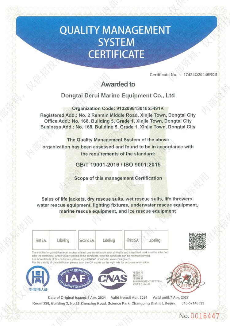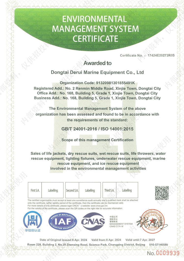 單氣室性能特點(diǎn)和主要技術(shù)參數(shù)性能特點(diǎn):單氣室氣脹式救生衣,是按照歐洲標(biāo)準(zhǔn)EN396:1993/A1:1998設(shè)計(jì)制造,并參照國際標(biāo)準(zhǔn)MSC.81(70)的有關(guān)要...